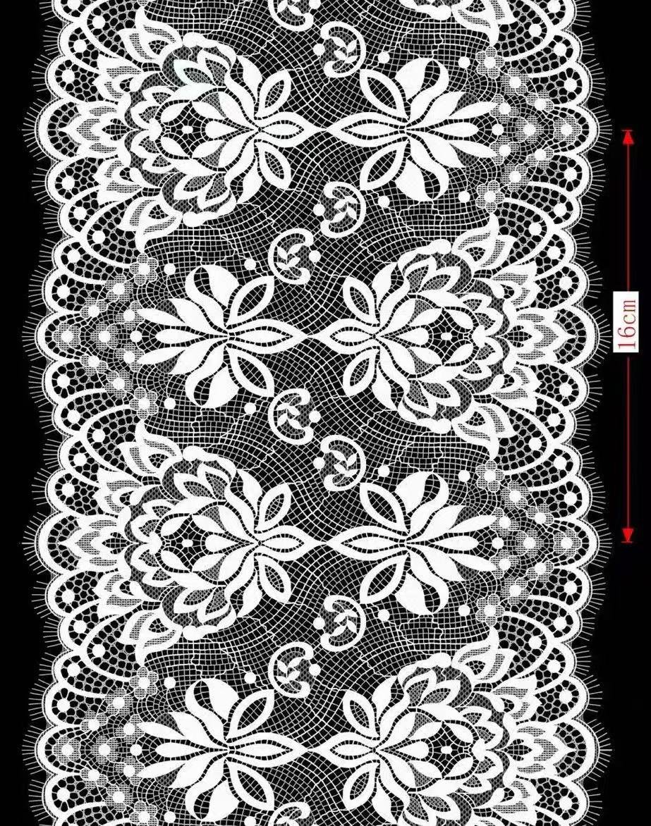 This lace eyelash trim features a white – based color scheme, being exquisitely delicate. The lace texture presents a hollowed – out mesh structure, paired with regular floral patterns. The flower shapes are graceful and the lines are smooth. The fine design at the edge, similar to eyelashes, adds a sense of灵动 refinement. It has both a retro and elegant charm as well as a romantic and soft beauty. It is often used to adorn clothing, home textiles, etc., enhancing the delicacy and artistic atmosphere.
