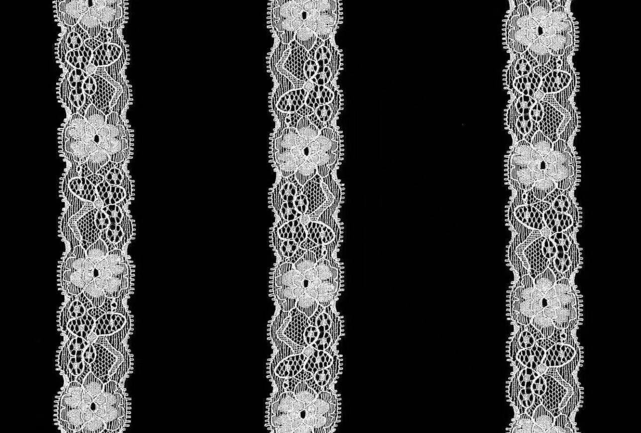 This white lace trim is delicate and elegant. Based on a fine mesh, it skillfully weaves rich floral patterns. Each flower, with its unique shape, is vivid and lifelike, and the texture of the petals is clearly visible. Paired with dynamic branch and leaf lines, they seem to sway gently in the breeze. The edge of the lace is in a beautiful wavy shape, and the overall workmanship is meticulous, with every detail showcasing exquisite craftsmanship. This lace trim is light, soft, and highly breathable, making it ideal for decorating close – fitting garments such as lingerie and pajamas, adding a romantic and sexy atmosphere. It can also be used to make small items like handkerchiefs and hair accessories, giving them a delicate and sweet style.